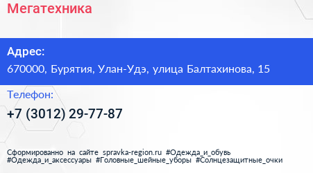 Мегатехника по адресу 670000, Бурятия, Улан-Удэ, улица Балтахинова, 15 в дальнейшем Организация, размещена в следующих категориях: