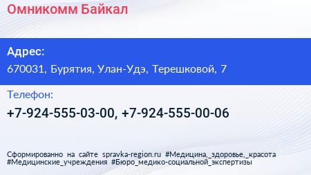 Омникомм-Байкал по адресу 670031, Бурятия, Улан-Удэ, Терешковой, 7 в дальнейшем Организация, размещена в следующих категориях: