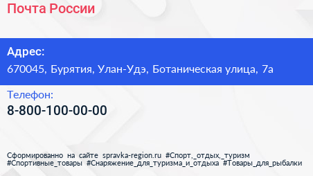 Почта России по адресу 670045, Бурятия, Улан-Удэ, Ботаническая улица, 7а в дальнейшем Организация, размещена в следующих категориях: