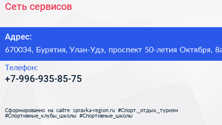 Сеть сервисов по адресу 670034, Бурятия, Улан-Удэ, проспект 50-летия Октября, 8а в дальнейшем Организация, размещена в следующих категориях: