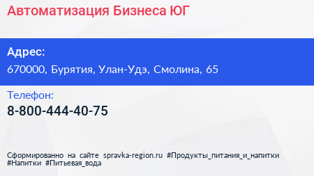 Автоматизация Бизнеса-ЮГ по адресу 670000, Бурятия, Улан-Удэ, Смолина, 65 в дальнейшем Организация, размещена в следующих категориях:
