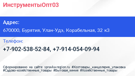 ИнструментыОпт03 по адресу 670000, Бурятия, Улан-Удэ, Корабельная, 32 к3 в дальнейшем Организация, размещена в следующих категориях: