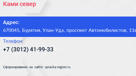 Ками-север по адресу 670045, Бурятия, Улан-Удэ, проспект Автомобилистов, 11в в дальнейшем Организация, размещена в следующих категориях: