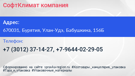 СофтКлимат, компания по адресу 670031, Бурятия, Улан-Удэ, Бабушкина, 156Б в дальнейшем Организация, размещена в следующих категориях: