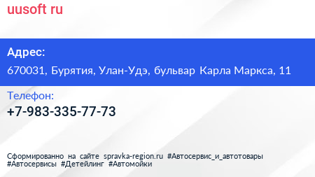 uusoft.ru по адресу 670031, Бурятия, Улан-Удэ, бульвар Карла Маркса, 11 в дальнейшем Организация, размещена в следующих категориях: