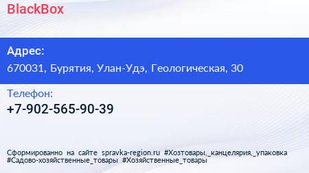 BlackBox по адресу 670031, Бурятия, Улан-Удэ, Геологическая, 30 в дальнейшем Организация, размещена в следующих категориях: