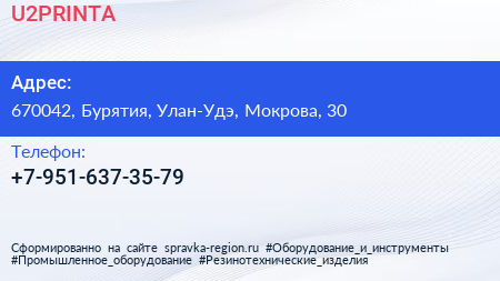 U2PRINTA по адресу 670042, Бурятия, Улан-Удэ, Мокрова, 30 в дальнейшем Организация, размещена в следующих категориях: