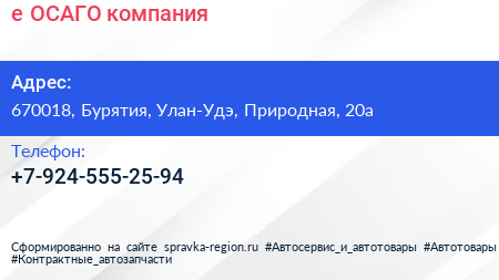 е-ОСАГО, компания по адресу 670018, Бурятия, Улан-Удэ, Природная, 20а в дальнейшем Организация, размещена в следующих категориях: