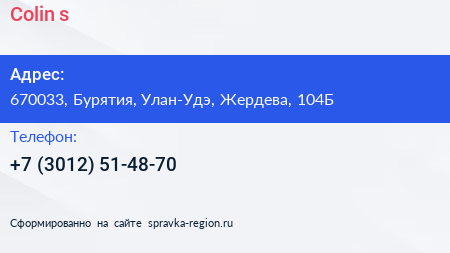 Colin`s по адресу 670033, Бурятия, Улан-Удэ, Жердева, 104Б в дальнейшем Организация, размещена в следующих категориях: