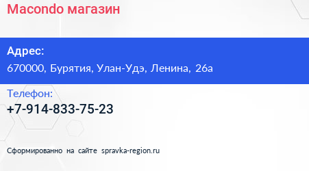 Macondo, магазин по адресу 670000, Бурятия, Улан-Удэ, Ленина, 26а в дальнейшем Организация, размещена в следующих категориях: