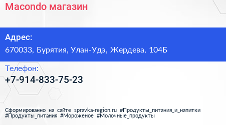 Macondo, магазин по адресу 670033, Бурятия, Улан-Удэ, Жердева, 104Б в дальнейшем Организация, размещена в следующих категориях: