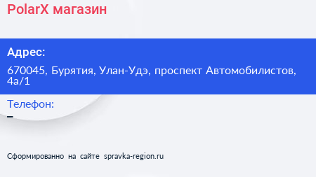 PolarX, магазин по адресу 670045, Бурятия, Улан-Удэ, проспект Автомобилистов, 4а/1 в дальнейшем Организация, размещена в следующих категориях: