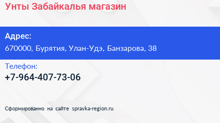 Унты Забайкалья, магазин по адресу 670000, Бурятия, Улан-Удэ, Банзарова, 38 в дальнейшем Организация, размещена в следующих категориях: