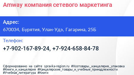 Amway, компания сетевого маркетинга по адресу 670034, Бурятия, Улан-Удэ, Гагарина, 25Б в дальнейшем Организация, размещена в следующих категориях: