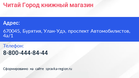 Читай-Город, книжный магазин по адресу 670045, Бурятия, Улан-Удэ, проспект Автомобилистов, 4а/1 в дальнейшем Организация, размещена в следующих категориях:
