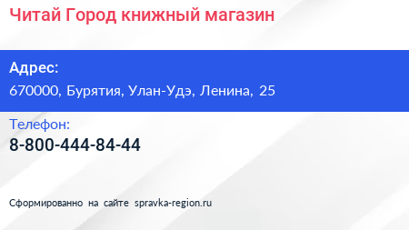 Читай-Город, книжный магазин по адресу 670000, Бурятия, Улан-Удэ, Ленина, 25 в дальнейшем Организация, размещена в следующих категориях:
