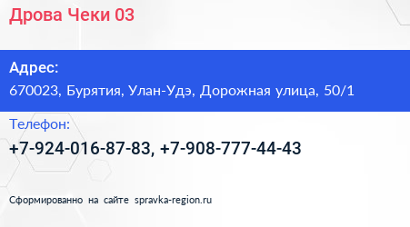Дрова Чеки 03 по адресу 670023, Бурятия, Улан-Удэ, Дорожная улица, 50/1 в дальнейшем Организация, размещена в следующих категориях: