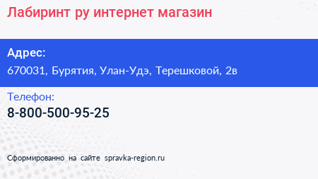Лабиринт.ру, интернет-магазин по адресу 670031, Бурятия, Улан-Удэ, Терешковой, 2в в дальнейшем Организация, размещена в следующих категориях: