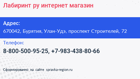 Лабиринт.ру, интернет-магазин по адресу 670042, Бурятия, Улан-Удэ, проспект Строителей, 72 в дальнейшем Организация, размещена в следующих категориях:
