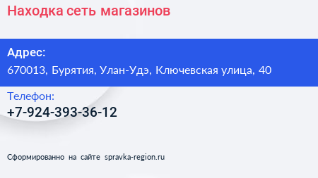 Находка, сеть магазинов по адресу 670013, Бурятия, Улан-Удэ, Ключевская улица, 40 в дальнейшем Организация, размещена в следующих категориях: