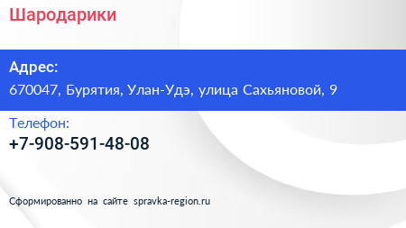 Шародарики по адресу 670047, Бурятия, Улан-Удэ, улица Сахьяновой, 9 в дальнейшем Организация, размещена в следующих категориях: