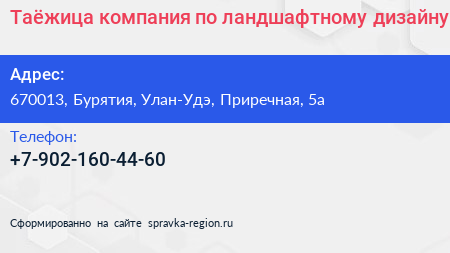 Таёжица, компания по ландшафтному дизайну по адресу 670013, Бурятия, Улан-Удэ, Приречная, 5а в дальнейшем Организация, размещена в следующих категориях: