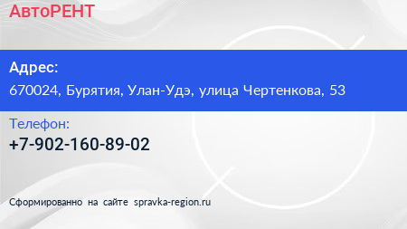 АвтоРЕНТ по адресу 670024, Бурятия, Улан-Удэ, улица Чертенкова, 53 в дальнейшем Организация, размещена в следующих категориях: