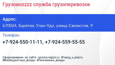 Грузовоzzzz, служба грузоперевозок по адресу 670024, Бурятия, Улан-Удэ, улица Связистов, 9 в дальнейшем Организация, размещена в следующих категориях: