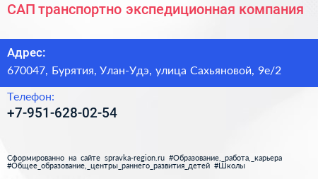 САП, транспортно-экспедиционная компания по адресу 670047, Бурятия, Улан-Удэ, улица Сахьяновой, 9е/2 в дальнейшем Организация, размещена в следующих категориях: