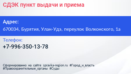 СДЭК, пункт выдачи и приема по адресу 670034, Бурятия, Улан-Удэ, переулок Волконского, 1а в дальнейшем Организация, размещена в следующих категориях: