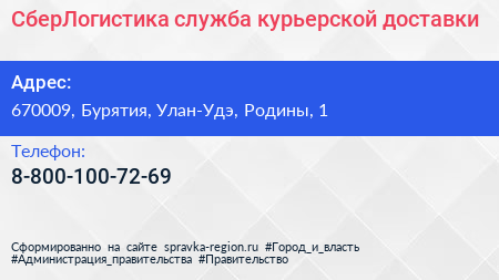 СберЛогистика, служба курьерской доставки по адресу 670009, Бурятия, Улан-Удэ, Родины, 1 в дальнейшем Организация, размещена в следующих категориях: