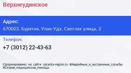 Верхнеудинское по адресу 670023, Бурятия, Улан-Удэ, Светлая улица, 2 в дальнейшем Организация, размещена в следующих категориях: