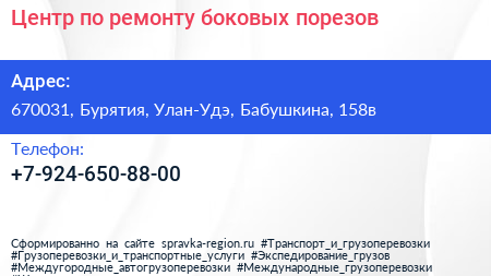 Центр по ремонту боковых порезов по адресу 670031, Бурятия, Улан-Удэ, Бабушкина, 158в в дальнейшем Организация, размещена в следующих категориях: