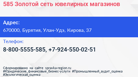 585 Золотой, сеть ювелирных магазинов по адресу 670000, Бурятия, Улан-Удэ, Кирова, 37 в дальнейшем Организация, размещена в следующих категориях:
