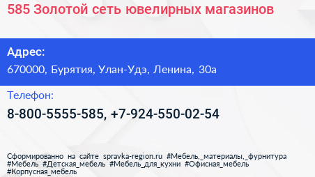 585 Золотой, сеть ювелирных магазинов по адресу 670000, Бурятия, Улан-Удэ, Ленина, 30а в дальнейшем Организация, размещена в следующих категориях: