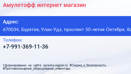 Амулетофф, интернет-магазин по адресу 670034, Бурятия, Улан-Удэ, проспект 50-летия Октября, 8а в дальнейшем Организация, размещена в следующих категориях: