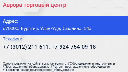 Аврора, торговый центр по адресу 670000, Бурятия, Улан-Удэ, Смолина, 54а в дальнейшем Организация, размещена в следующих категориях: