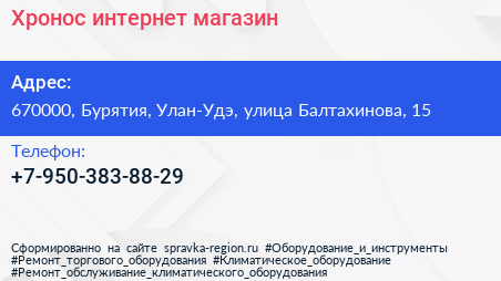 Хронос, интернет-магазин по адресу 670000, Бурятия, Улан-Удэ, улица Балтахинова, 15 в дальнейшем Организация, размещена в следующих категориях: