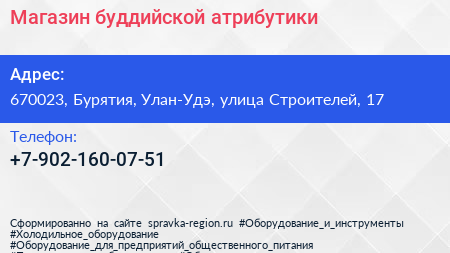 Магазин буддийской атрибутики по адресу 670023, Бурятия, Улан-Удэ, улица Строителей, 17 в дальнейшем Организация, размещена в следующих категориях: