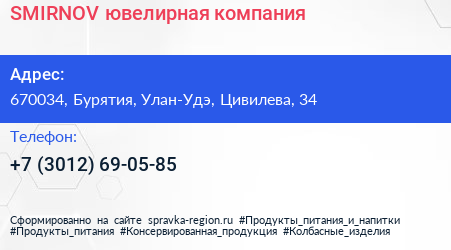 SMIRNOV, ювелирная компания по адресу 670034, Бурятия, Улан-Удэ, Цивилева, 34 в дальнейшем Организация, размещена в следующих категориях: