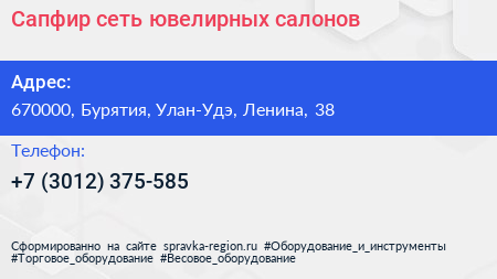 Сапфир, сеть ювелирных салонов по адресу 670000, Бурятия, Улан-Удэ, Ленина, 38 в дальнейшем Организация, размещена в следующих категориях: