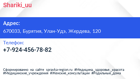 Shariki_uu по адресу 670033, Бурятия, Улан-Удэ, Жердева, 120 в дальнейшем Организация, размещена в следующих категориях: