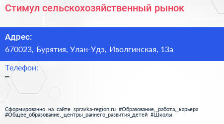Стимул, сельскохозяйственный рынок по адресу 670023, Бурятия, Улан-Удэ, Иволгинская, 13а в дальнейшем Организация, размещена в следующих категориях: