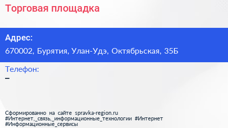 Торговая площадка по адресу 670002, Бурятия, Улан-Удэ, Октябрьская, 35Б в дальнейшем Организация, размещена в следующих категориях:
