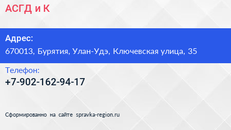 АСГД и К по адресу 670013, Бурятия, Улан-Удэ, Ключевская улица, 35 в дальнейшем Организация, размещена в следующих категориях: