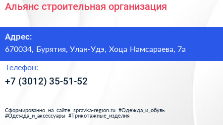 Альянс, строительная организация по адресу 670034, Бурятия, Улан-Удэ, Хоца Намсараева, 7а в дальнейшем Организация, размещена в следующих категориях: