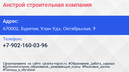Анстрой, строительная компания по адресу 670002, Бурятия, Улан-Удэ, Октябрьская, 9 в дальнейшем Организация, размещена в следующих категориях: