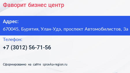 Фаворит, бизнес-центр по адресу 670045, Бурятия, Улан-Удэ, проспект Автомобилистов, 3а в дальнейшем Организация, размещена в следующих категориях: