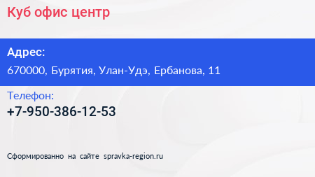 Куб, офис-центр по адресу 670000, Бурятия, Улан-Удэ, Ербанова, 11 в дальнейшем Организация, размещена в следующих категориях:
