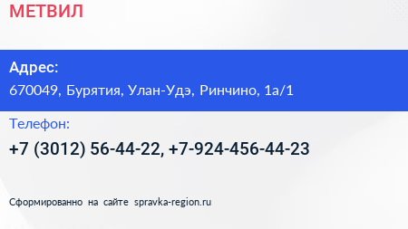МЕТВИЛ по адресу 670049, Бурятия, Улан-Удэ, Ринчино, 1а/1 в дальнейшем Организация, размещена в следующих категориях: